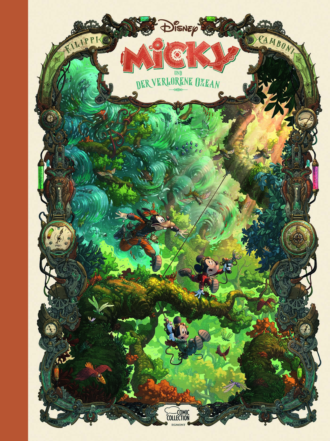 // Unter dem Titel „Micky und der verlorene Ozean“ (© 2018 Disney) machen sich derweil der Texter Denis-Pierre Filippi und Zeichner Silvio Camboni daran, auf 60 Seiten eine wirklich charmante Neudefinition des Universums rund um das schöne Entenhausen aus dem Ärmel zu schütteln. Zusammen mit Gaspard Yvan, welcher für die Kolorierung des Bandes verantwortlich gewesen ist, macht sich das Duo daran eine spannende Disney-Hommage aus dem Ärmel zu schütteln, die allen Fans von Minnie, Goofy und Co. ein breites Grinsen aufs Gesicht zaubern dürfte. In diesem Buch jedenfalls schaffen es die Künstler auf 60 Seiten immer wieder dem abgesteckten Entenhausen-Kosmos ein paar neue Facetten abzuringen und die „Steampunk“-Elemente, welche mit dieser Geschichte verwoben sind, tun ihr Übriges, um „Micky und der verlorene Ozean“ nachhaltig im Gedächtnis zu verankern. Wenn du jetzt also auch wissen möchtest, was Micky und Minnie als selbsternannte „Sammler“ für eine Figur machen, dann lass dir diese Geschichte, welche uns unter anderem in der Tiefsee mit alten Kriegsschiffen konfrontiert, nicht entgehen.