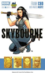 // Wer eher auf traditionelle Abenteuercomics steht, der kommt im Hause „Skybourne“ auf seine Kosten. Der Titel von Frank Cho (Shanna, Hulk) hält was er verspricht und konfrontiert uns mit drei unsterblichen Kindern, die nicht nur superstark sind, sondern auch vom wiedererstarkten Lazarus abstammen. Sie bekommen es in diesem Zusammenhang anschließend nicht nur mit dem fiesen Zauberer Merlin zu tun, der die Weltherrschaft an sich reißen möchte, sondern auch mit dessen sagenhaften Schwert Excalibur. Dabei kommt es zu intensiven Auseinandersetzungen in der Türkei, den Schweizer Alpen und im bayrischen Mittelwald und schon bald liegt kein Stein mehr auf dem anderen. Wenn du also mal wieder eine Geschichte über magische Artefakte, fremde Kreaturen und mysteriöse Organisationen lesen möchtest, dann bist du hier genau an der richtigen Adresse.