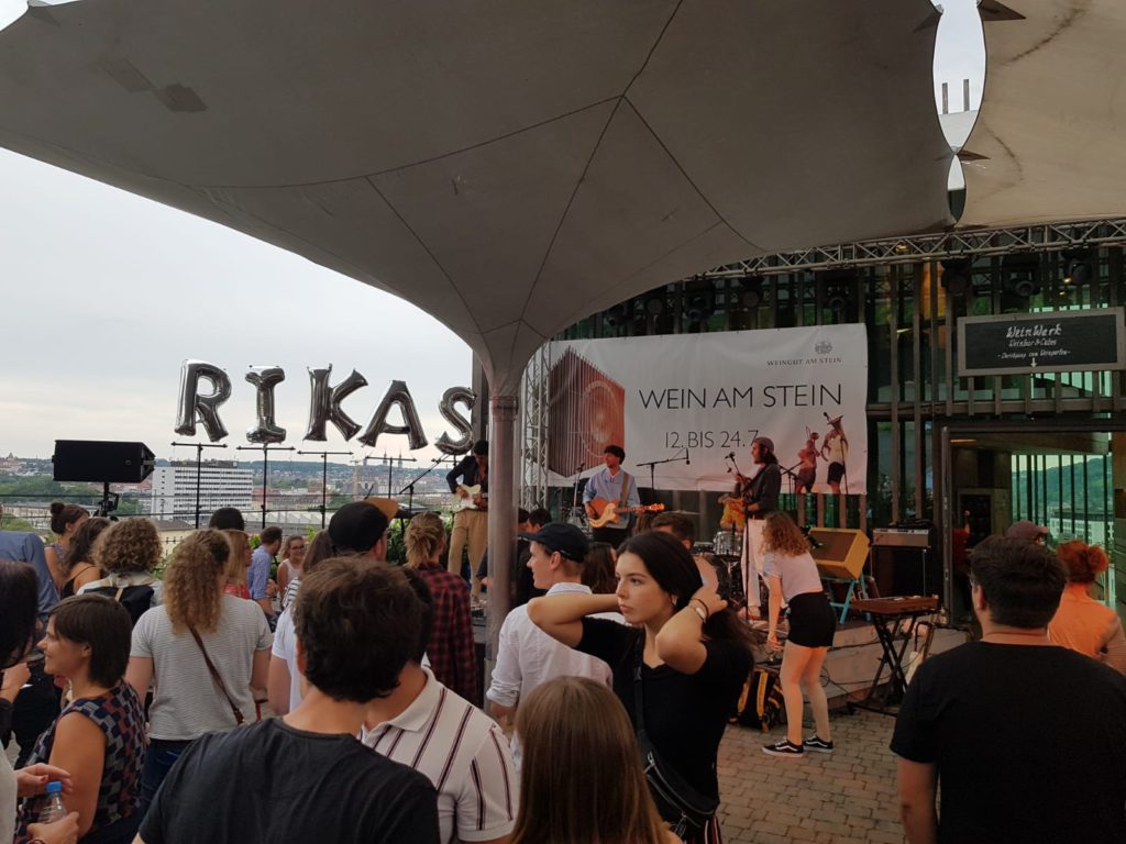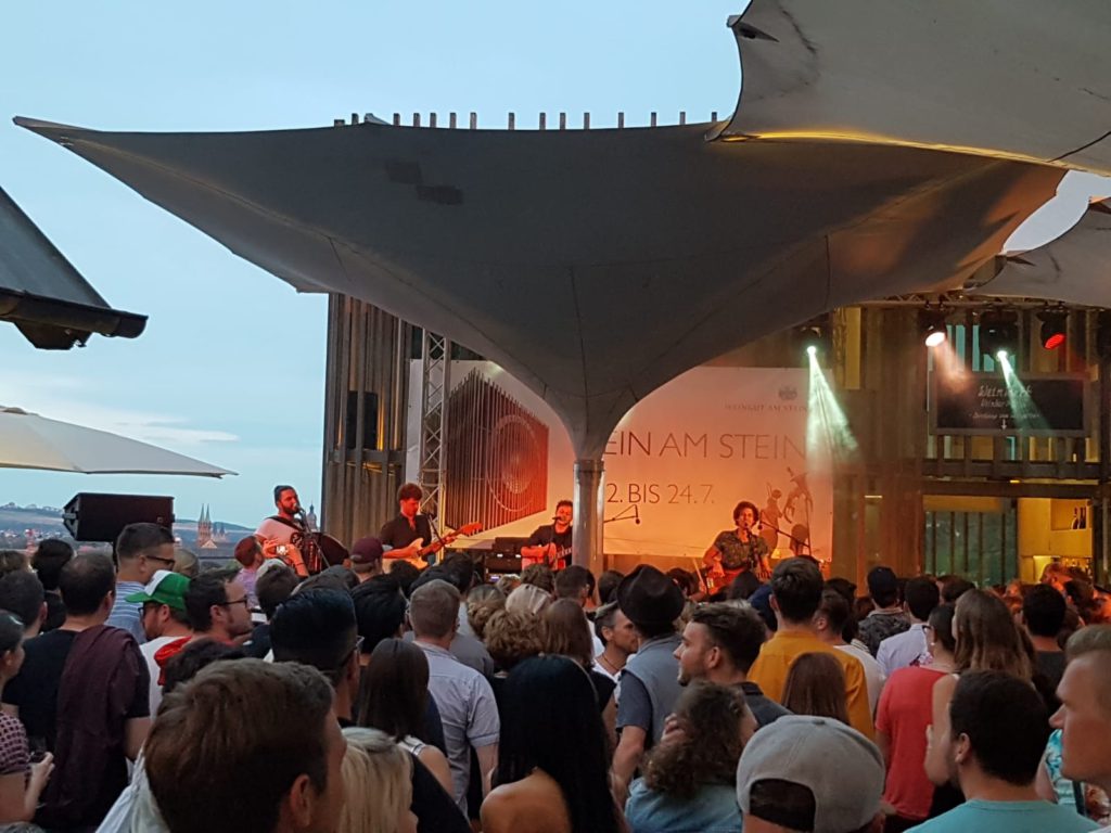 // Noch bis zum 24.07.2018 wird das jährliche Hoffest „Wein am Stein“ gefeiert. Mit den traditionellen Weinfesten, die man landauf landab im Sommer besuchen kann, hat es glücklicherweise wenig zu tun. Am Sonntag, nach dem WM-Finale, trafen sich die unterschiedlichsten Leute, um den lauen Sommerabend zu genießen und vor allem die Bands Rikas und Granada zu sehen. Die Jungs von Rikas, die Vorband aus Stuttgart, waren das erste Mal in Würzburg und hatten viel Spaß. Granada, gerade erst durch den enormen Urlaubsverkehr von Regensburg, hergekommen, brachte scheinbar eine große Fanbase mit. Denn vor der Bühne bewegte sich eine große Zahl von jungen und sehr textsicheren Leuten. Spaß hat es aber auch sichtlich den Besuchern gemacht, die die beiden Platten der Band, noch nicht kannten. Und das lag nicht nur am Rundum-Sorglos-Paket der Hoffest-Macher.