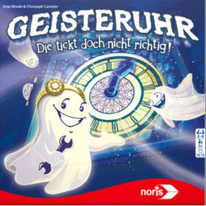 // Und weil wir gerade so schön in der Welt der verrückten Begebenheiten herumgeistern, an dieser Stelle auch noch der Hinweis auf das wunderbare Spiel „Geisteruhr“, welches ebenfalls im Hause „Noris“ erschienen ist. Unter dem Motto „Die tickt doch nicht richtig“ müsst ihr euch bei diesem Spiel daran versuchen, die Turmuhr wieder in Schwung zu bringen. Die ist nämlich irgendwie aus dem Takt geraten und so gilt es für die zahlreichen Geister, die um sie herumschwirren, sich gut festzuhalten. Sonst nämlich werden sie von dem wild vor sich hinwirbelnden Zeiger einfach hinweggefegt. Auf diese Weise bleibt dieses Spiel, das bereits von fünfjährigen Spieler*innen problemlos ausprobiert werden darf und mit einer Lauflänge von 10 bis 15 Minuten herrlich kurzweilig ist, bis zum Ende hin spannend und sorgt für jede Menge Spannung bei herbstlichen Spieleabenden. Worauf also wartest du noch? Beeil dich lieber, bevor die Uhr zwölf Mal schlägt. Denn dann wird abgerechnet und der Gewinner gekürt.