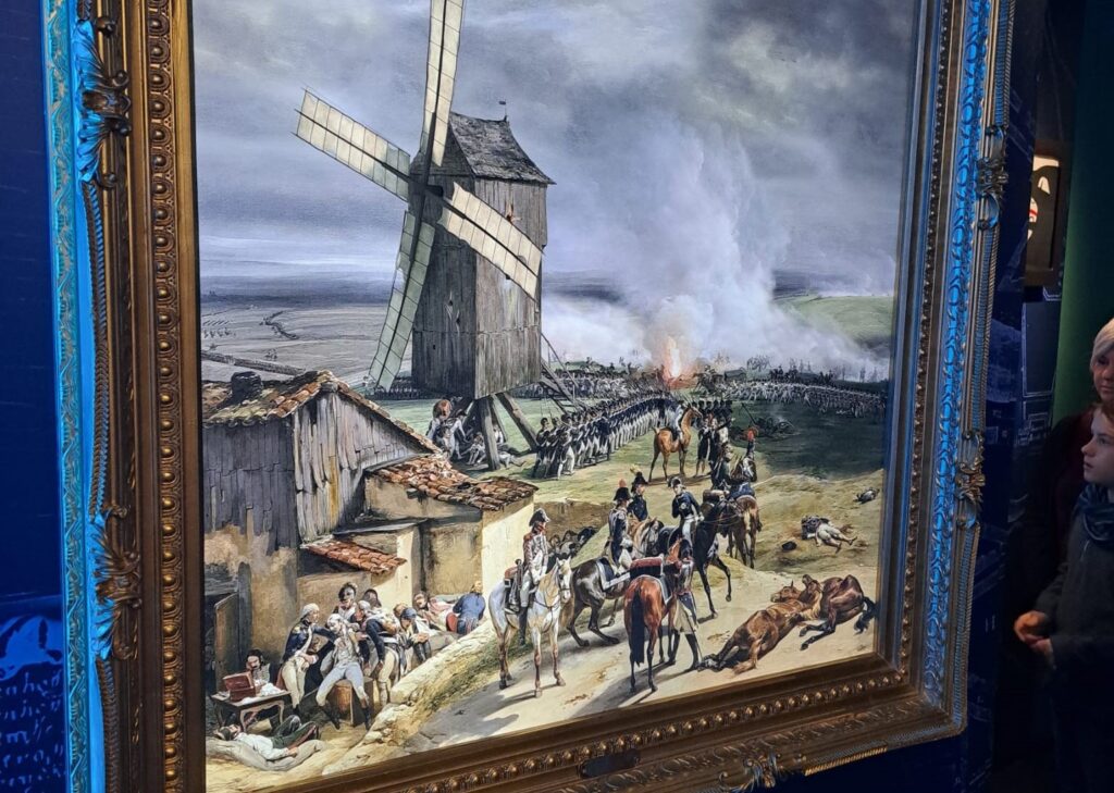 Was erwartet euch im Erlebnismuseum im Einzelnen? Auf einer Ausstellungsfläche von 1.400 m², geht ihr über 2 Ebenen durch 2000 Jahre deutscher Geschichte, wobei hier 12 Epochen dargestellt sind: Germanien, Frühmittelalter, Hochmittelalter, Reformation, Aufklärung, Deutscher Bund, Kaiserreich, Weimarer Republik, Nationalsozialismus, Deutsche Teilung, Konsumwelt Ost-West und das Vereinigte Deutschland. Aber keine Angst, ihr werdet hier nicht von endlosen Jahreszahlen und Details erschlagen. Viel mehr geht es darum einen Gesamtüberblick zu haben und während des ganzen Aufenthalts (ca. 1 bis 1,5 Std.) motiviert am Thema zu bleiben. Dabei helfen neben der einmaligen Ausstattung der Räume, die interaktiven Stationen mit Rätseln und geografischen Karten, aber auch die oft großformatigen Projektionen typischer Szenen der dargestellten Epochen (z. B. das Schlachtfeld im 1. Weltkrieg oder ein Ritterturnier).