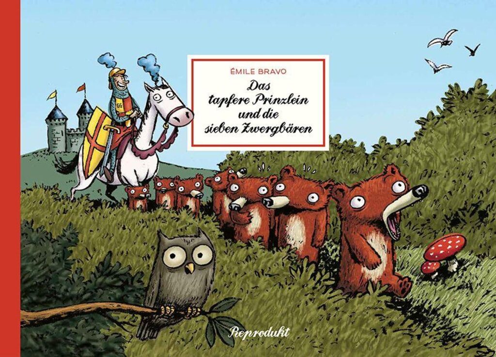 // Die beiden Bände Das tapfere Prinzlein und die sieben Zwergbären und Die sieben Zwergbären und der große Hunger von Émile Bravo sind auf den ersten Blick klassische Kindercomics – bunt, verspielt, märchenhaft. Doch wie so oft bei Bravo steckt hinter der scheinbaren Leichtigkeit eine erstaunlich kluge, oft sogar subversive Auseinandersetzung mit den Erzähltraditionen, aus denen diese Geschichten schöpfen. Schon die Grundidee der Reihe ist ein Vergnügen: Sieben kleine Bären, die offensichtlich an die sieben Zwerge erinnern, geraten in eine Welt, in der Märchenfiguren und -motive wild durcheinandergewürfelt werden. In Band eins beginnt alles mit einer vertrauten Situation – eine schlafende Figur im Bett der „Zwergwesen“ –, doch schnell kippt die Geschichte ins Absurde. Der Prinz, der eigentlich als Retter auftreten soll, verweigert schlicht seine Rolle. Er will die Unbekannte nicht küssen, weil er sie gar nicht kennt. Allein dieser Moment ist typisch für Bravos Humor: Er nimmt die oft unhinterfragten Logiken klassischer Märchen und legt sie mit einem einfachen, aber wirkungsvollen Gedanken offen.